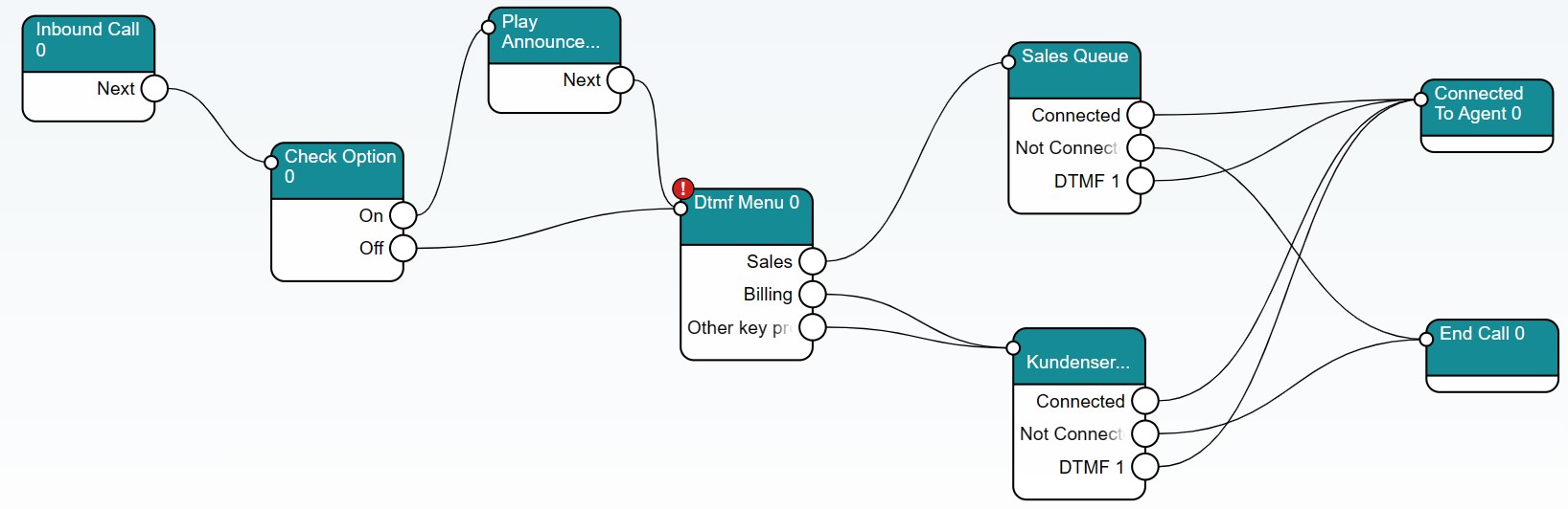 Schritt 10: Routingplan Call miteinander verbinden Verbinden Sie die einzelnen Nodes in Ihrem Editor wie folgt: